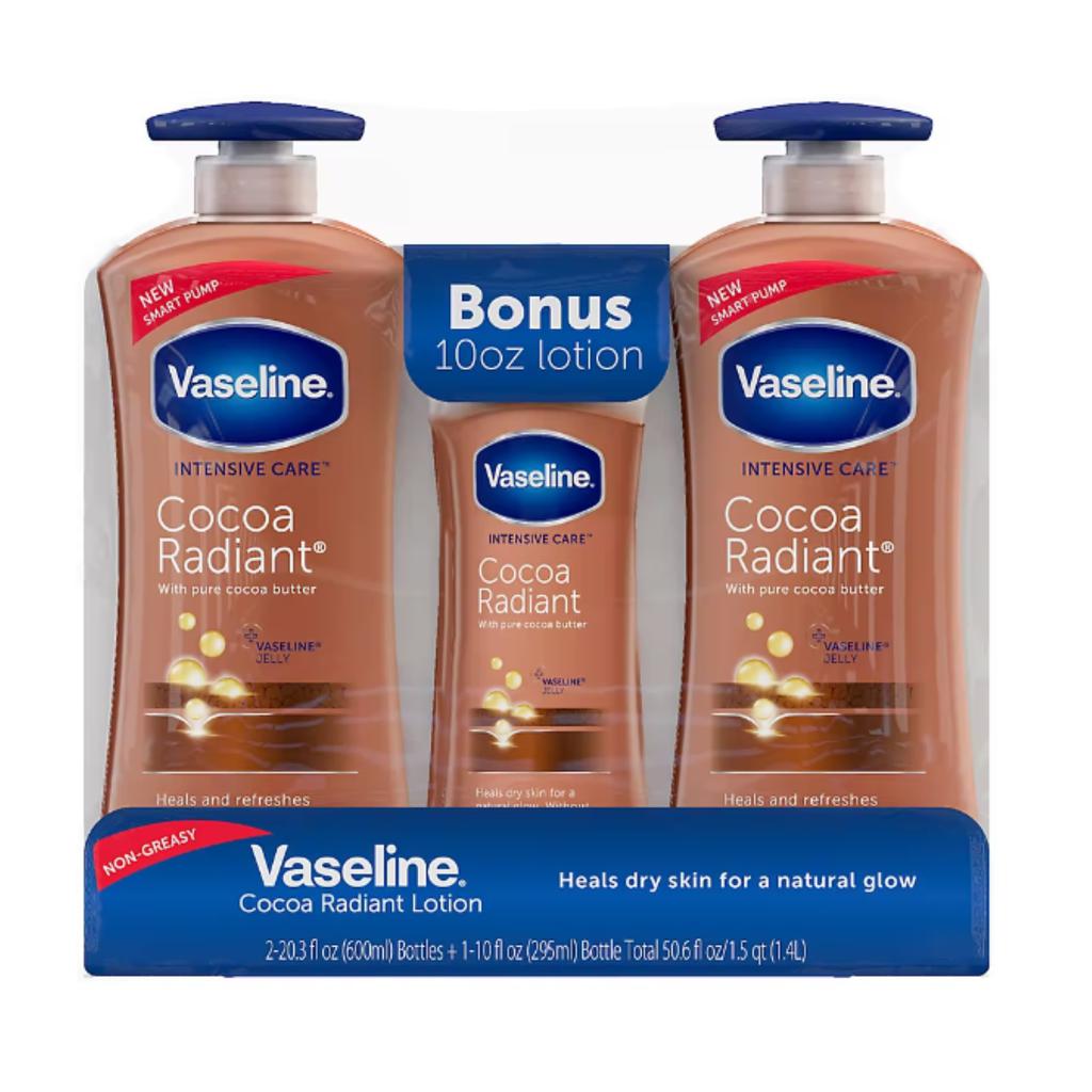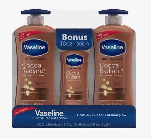 Vaseline Intensive Repair Lotion 50.6 oz /Lotion with pure cocoa butter. Non - Greasy. 2-20.3 oz Bottles + 1-10 oz Bottle. Total: 50.6 oz/ 26004
