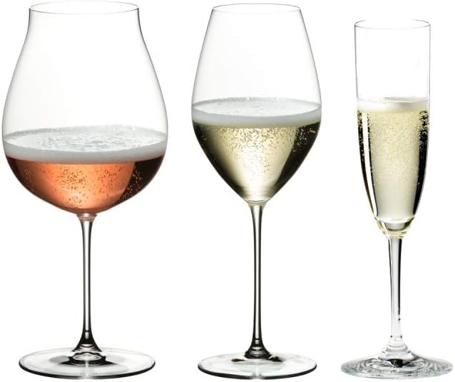 This tasting set contains one RIEDEL Veritas Champagne Wine glass, one RIEDEL Veritas Rosé Champagne glass and one Vinum Champagne glass.
