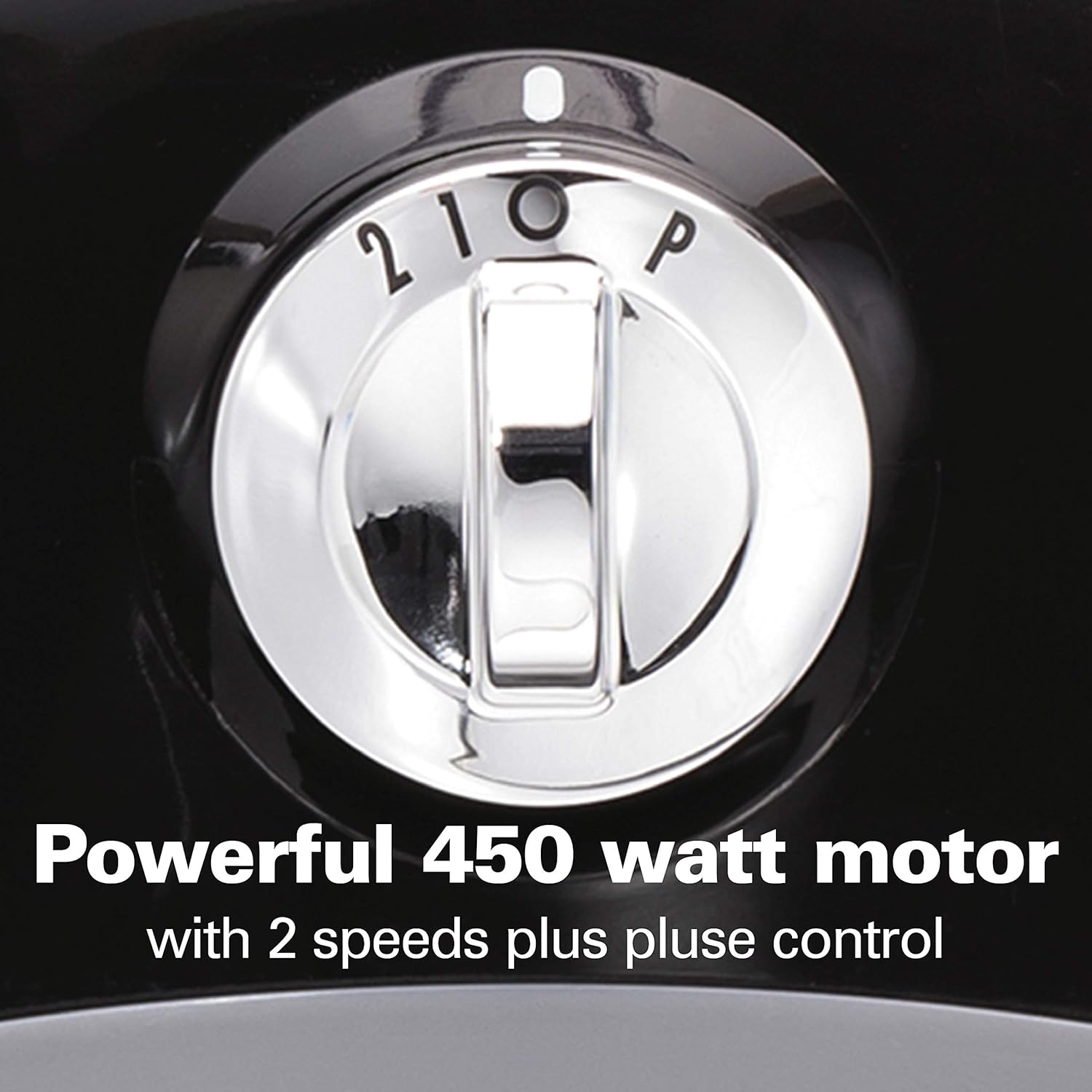 2 speeds plus pulse and 450 watts of power: Food processor’s low and high speeds plus pulse gives you the control you need for a variety of recipes