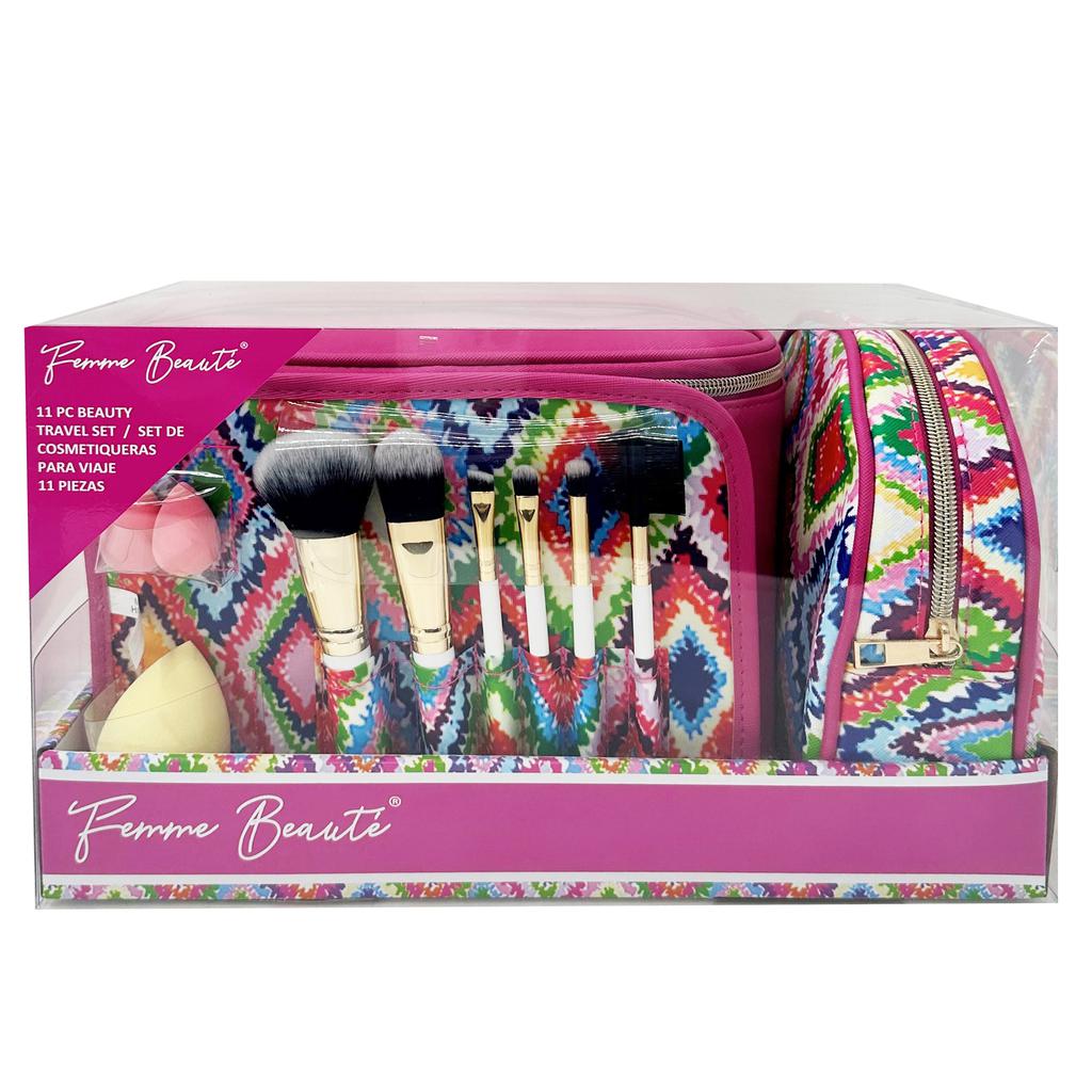 Femme Beaute Beauty Travel Set 11 Pieces. Take all your makeup accessories with you to touch on your travels or even on your daily routine between home and work.-452782-0841238117890
