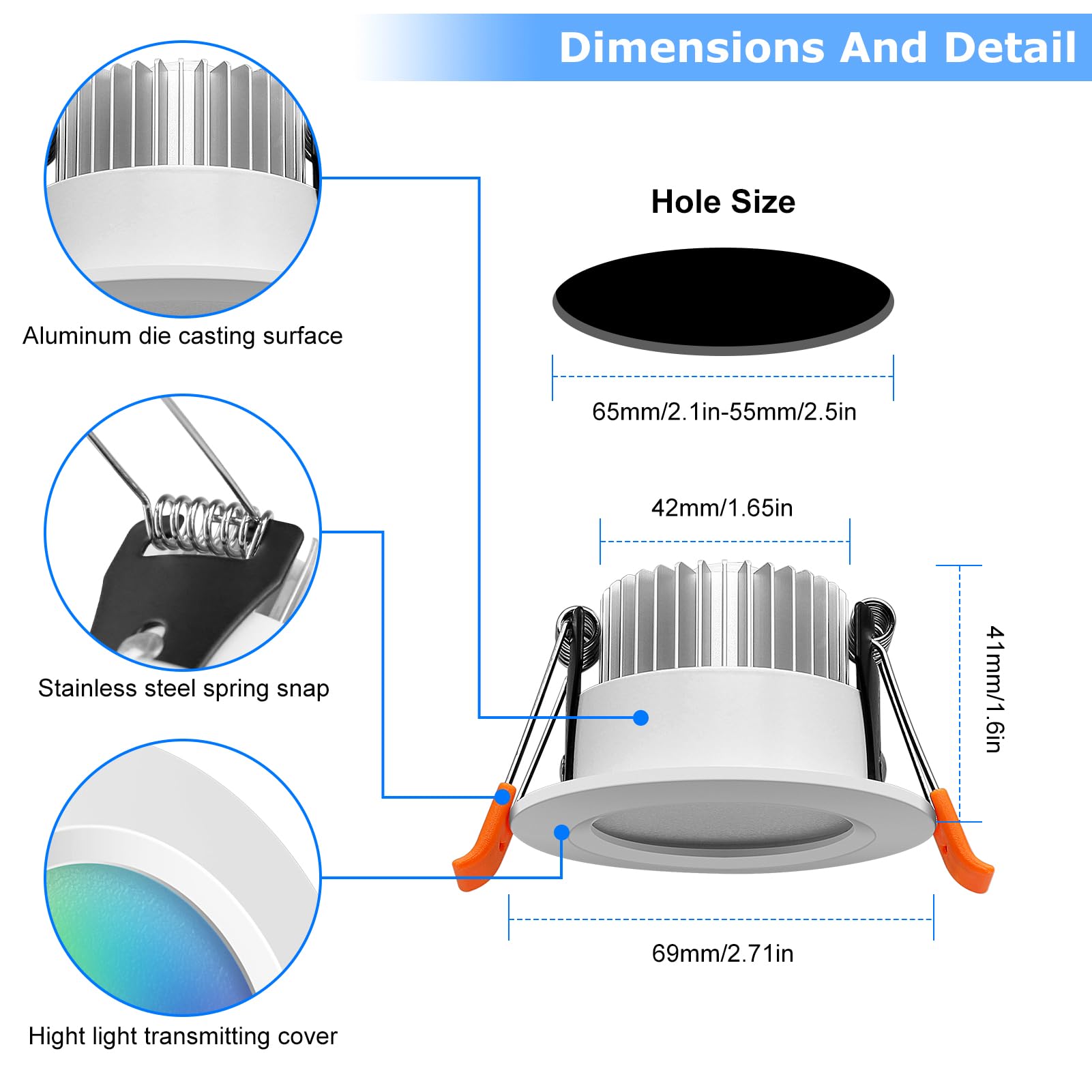 - Energy Efficient LED: 5W dimmable downlight replaces 50W halogen; aluminum and ABS design ensures fast heat dissipation; saves over 85% energy