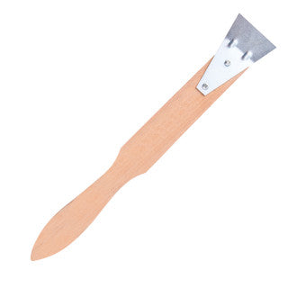 The ergonomically shaped wooden handle ensures a comfortable grip and precise control during use.