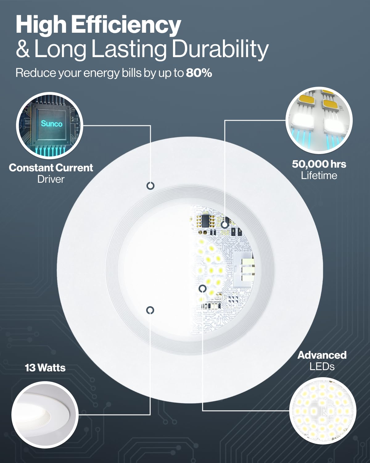 Sunco 24 Pack Retrofit LED Recessed Lighting 6 Inch, Downlight Can Lights for Ceiling, 1050 LM, 2700K/3000K/3500K/4000K/5000K, Dimmable, Baffle Trim, 13W=75W, 50000 Lifetime Hours, Damp Rated UL