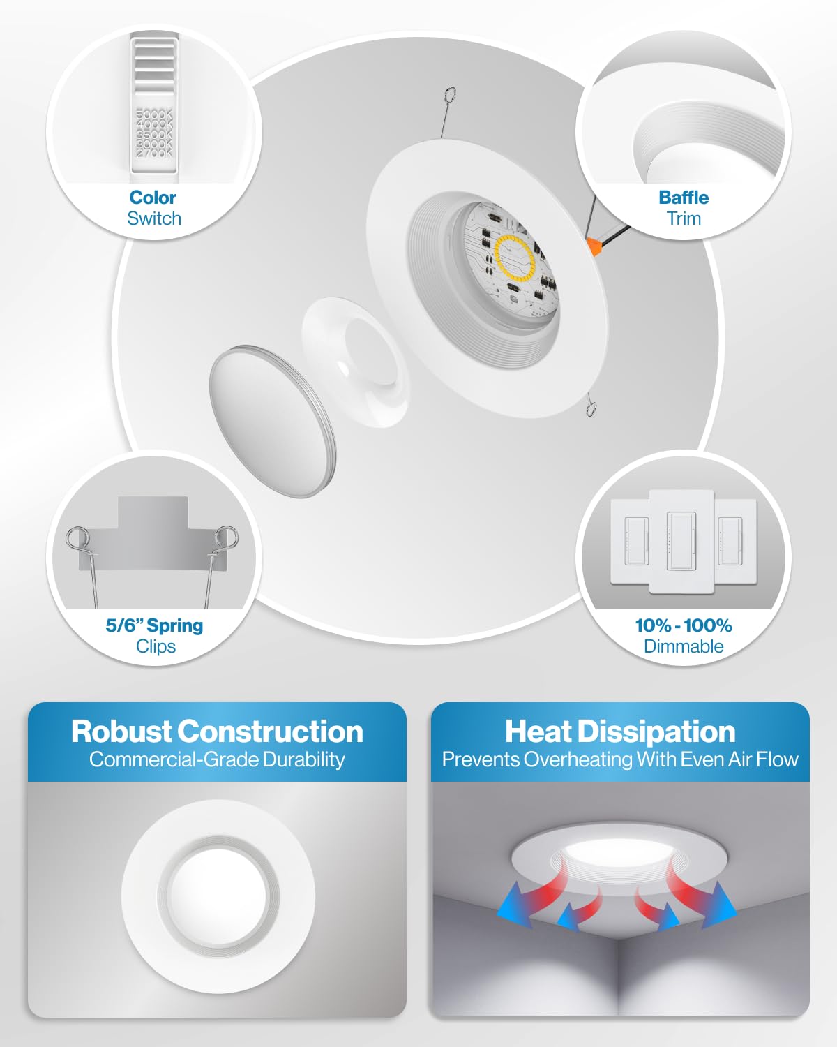- 5/6 Inch Retrofit with Selectable Color and Baffle Trim