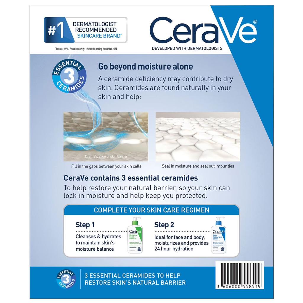 CeraVe Moisturizing Lotion | Package: 2 Unit combo | Content per Unit: 355 mL | Total content: 710 mL | Skin type: normal to dry | Formula: with 3 essential ceramides and hyaluronic acid | Fragrance free and sulfate free | Non comedogenic | Use: face and body | Moisturization duration: up to 24 hours | Endorsement: accepted by the National Eczema Association NEA | Country of origin: United States | Storage: store in a cool dry place.