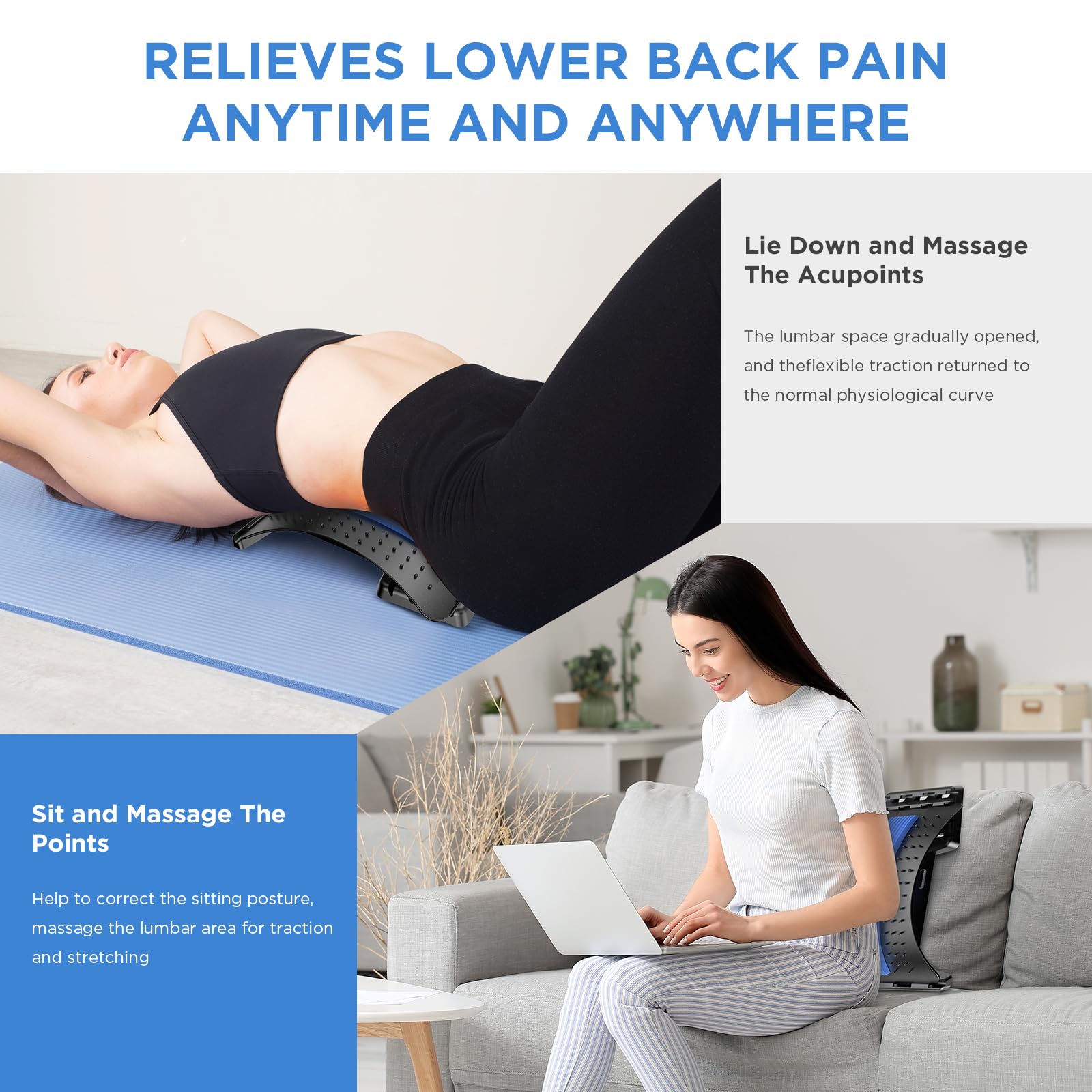 - 【Pain Relief for Lumbar and Back 】This is a back stretcher. Our back stretcher massager with acupuncture and moxibustion can provide physical stretching, acupuncture and moxibustion massage and back support for your back to relieve pain in the waist, back and sciatic nerves. It relieves back pressure and restores the natural line of the spine by stimulating the back, helping to stabilize the spine and improve the flexibility of the back and shoulder muscles.