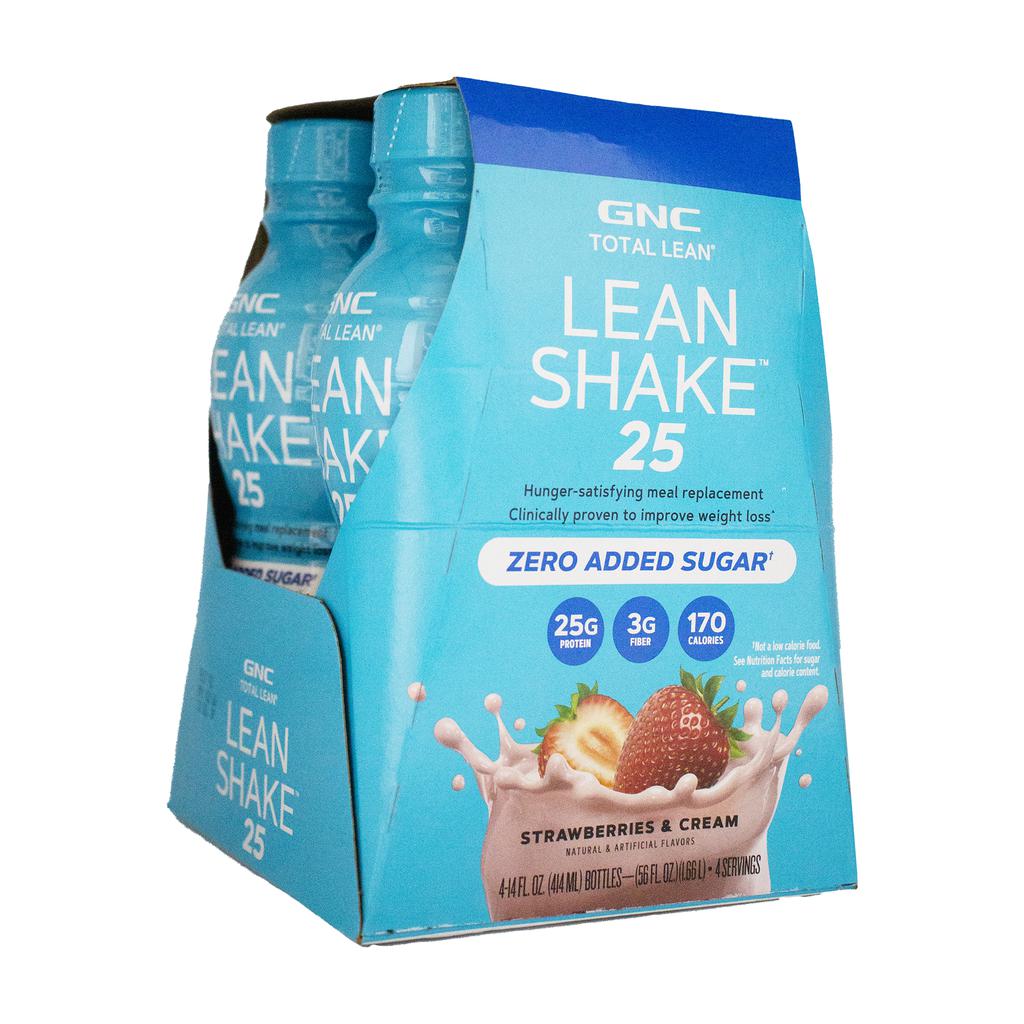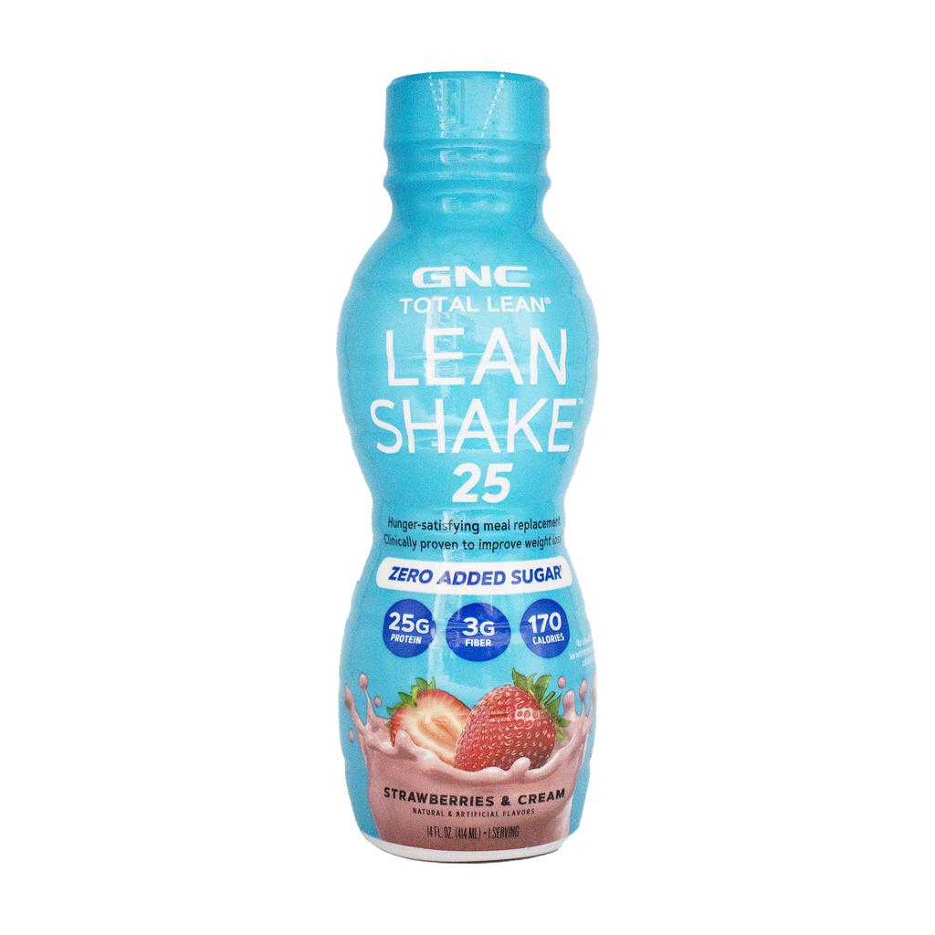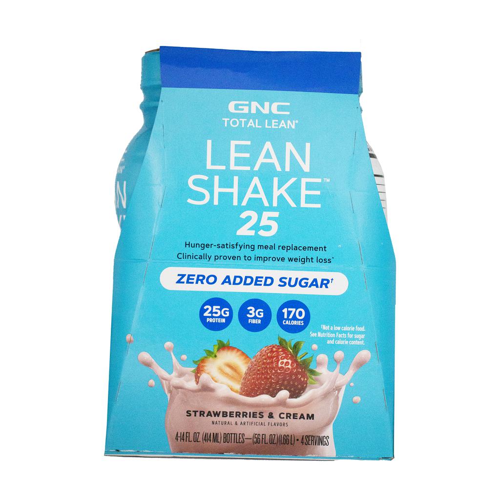 GNC Protein Shake with Strawberry & Cream Flavor | Country of origin: United States | Presentation: 4 units / 414 mL / 14 oz each | 25 g of protein per serving | 170 calories per serving | 3 g of fiber | Category: ready-to-drink protein shake | Brand: GNC Lean Shake | Storage: keep refrigerated.