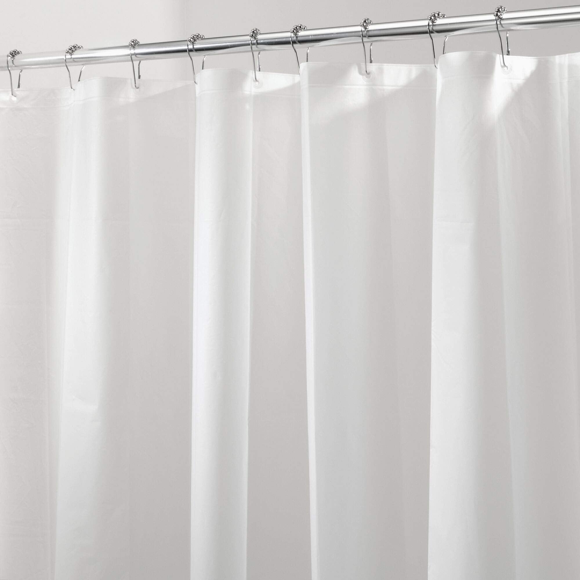 Add a touch of style and function to your bathroom with the iDesign PEVA Bathroom Shower Curtain Liner. This fast-drying, waterproof shower curtain can be used on its own or paired with a fabric curtain as a liner to keep water in the shower and off of your bathroom floors. Made with non-toxic PEVA (polyethylene vinyl acetate) material, this soft-touch shower liner is PVC-free, chlorine-free, and odorless. The weighted hem with magnets ensures the liner stays in place when getting into and out of the shower. Designed with rust-resistant polished metal grommets and a reinforced header, this versatile shower curtain stands up to every day use and is low-maintenance - simply wipe with a damp cloth for quick clean up. It can be used with any style hooks or rings including C-hooks, S-hooks, or roller rings and is compatible with both straight and curved curtain rods. The sleek design and white color match a variety of bathroom decor styles. This standard-sized shower curtain liner measures 72" x 72" and is ideal for home, apartment, college, and dorm bathrooms. With iDesign by InterDesign, you can #LiveSimply every day.