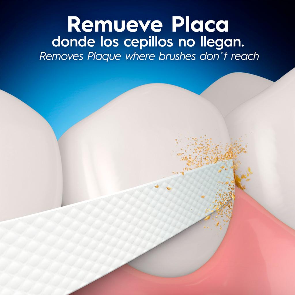 Glides up to 50% easier than regular dental floss. - It combines comfort with cleaning power to effectively remove plaque between the teeth and just below the gum line. - Gently stimulates the gums and helps prevent gingivitis as part of a complete dental plan. - Contains a light natural wax coating for a better grip. - Gentle on the gums, hard on the plaque.