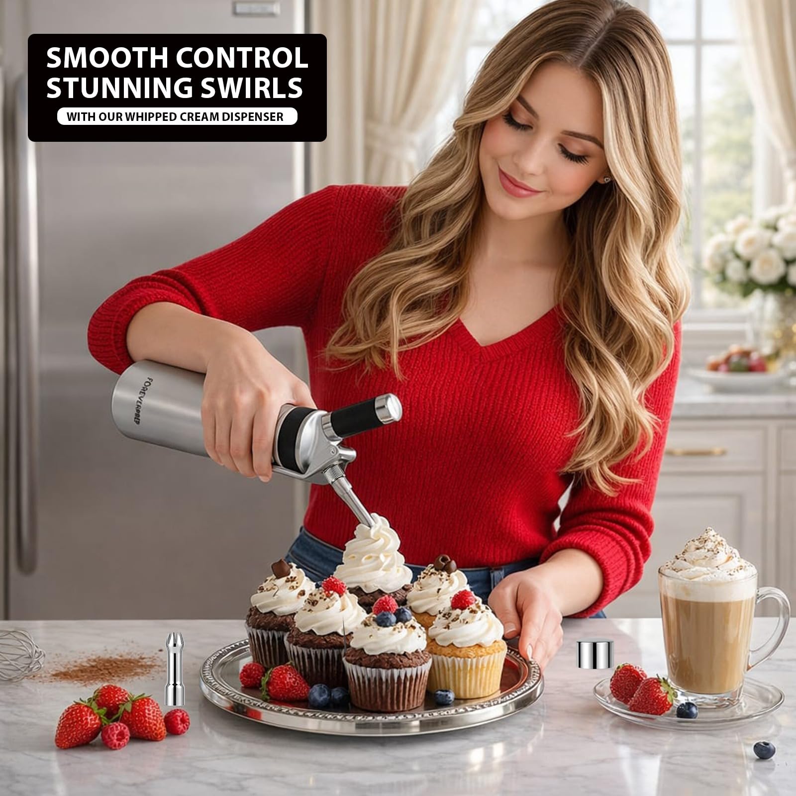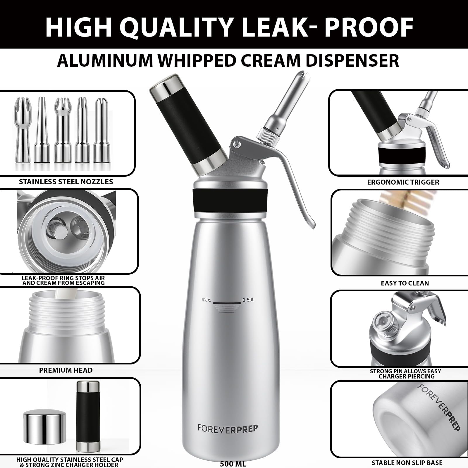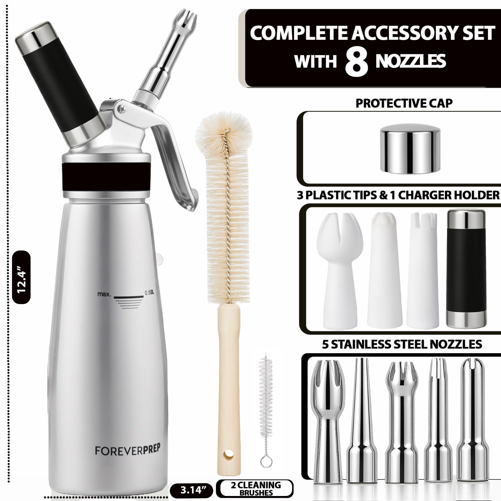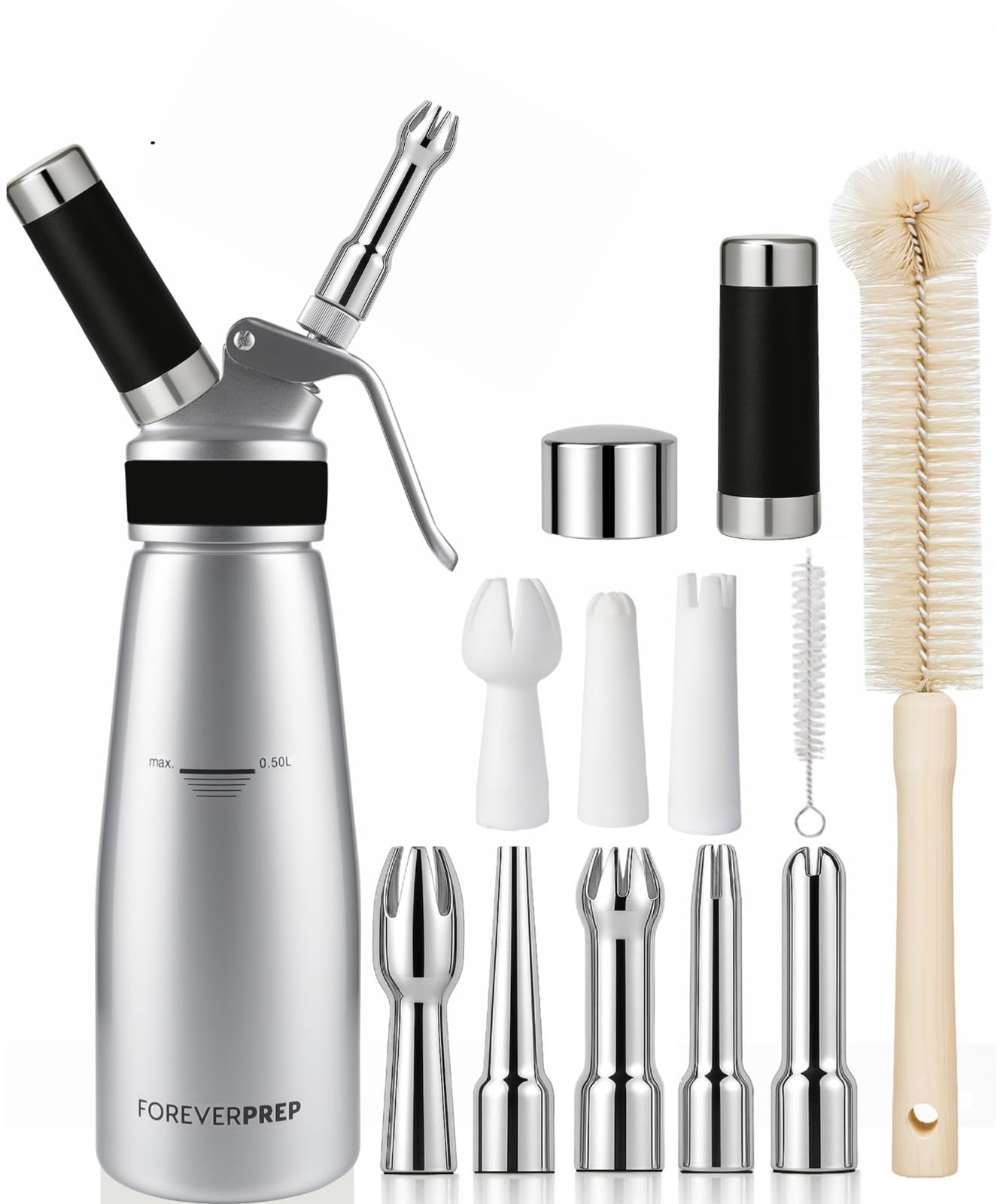 - BEST GIFT IDEA & 100% SATISFACTION GUARANTEED: This complete ForeverPrep professional whipped cream dispenser set makes a perfect gift for bakers, coffee lovers, home chefs, and dessert enthusiasts. A thoughtful, practical, and elegant gift choice for birthdays, holidays, housewarmings, or special occasions. Backed by a 100% Satisfaction Guarantee from Foreverprep Trusted Brand — and if you ever face any issue, you can return it within 30 days. so you can buy it with confidence.