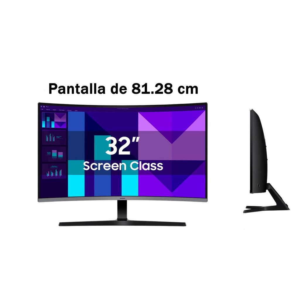 Curved screen: 81.28 cm / 32" | FHD resolution: 1 920 x 1 080 | Aspect ratio: 16:9 | Curvature: 1 500R | VA panel | Typical brightness: 250 cd/m² | Contrast ratio: 3000:1 (typical) | Response time: 4 ms (GTG) | Color support: 16.7M | sRGB coverage: 99% | Refresh rate: Up to 100 Hz | Windows 11 compatible | HDMI: 1 EA | D-Sub: 1 EA | HDCP version (HDMI): 1.2 | Headphone jack | Built-in speakers: No | Tilt: -2.0°(±2.0°)~22.0°(±2.0°) | Wall mount: 7.5 cm x 7.5 cm | Color: Black | Simple stand type | Power supply: External adapter | Max. power consumption: 48 W | Voltage: AC100–240 V | Recycled material: 29% | Dimensions with stand: 71.28 cm x 52.16 cm x 20.3 cm / 28.0" x 20.5" x 8" | Dimensions without stand: 71.28 cm x 42.22 cm x 9.25 cm / 28.0" x 16.6" x 3.6" | Weight with stand: 4.1 kg / 9.1 lb | Weight without stand: 3.5 kg / 7.7 lb | Power cord length: 1.5 m / 5 ft | HDMI cable included | Made in China.