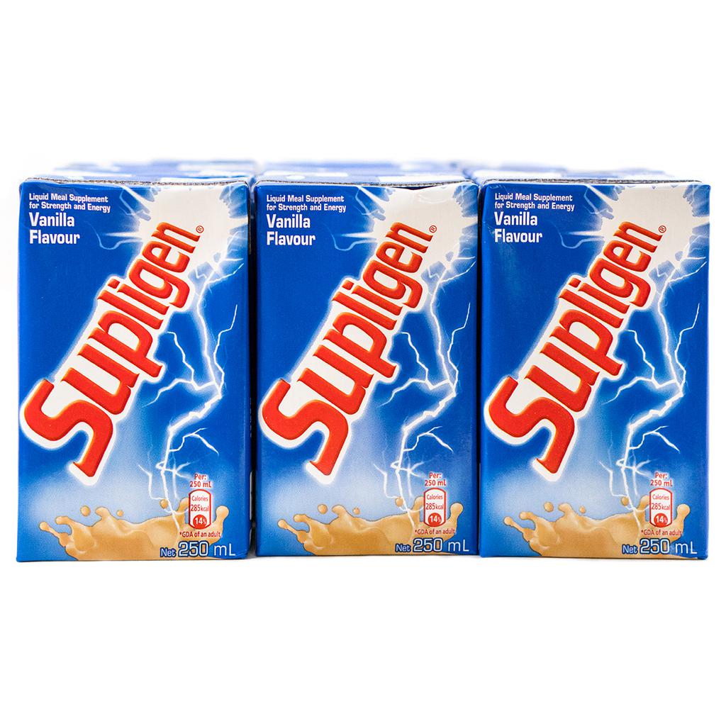 Supligen Vanilla Flavor Drink is a liquid supplement specifically designed as a dietary supplement to increase strength and energy. Each 250 mL unit comes in a 12-pack, providing a convenient, ready-to-drink supply.